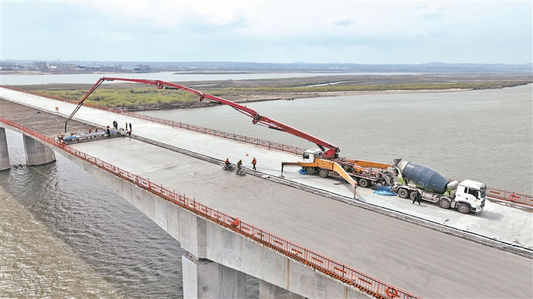 正在建设中的通河松花江特大桥。蒋辉摄