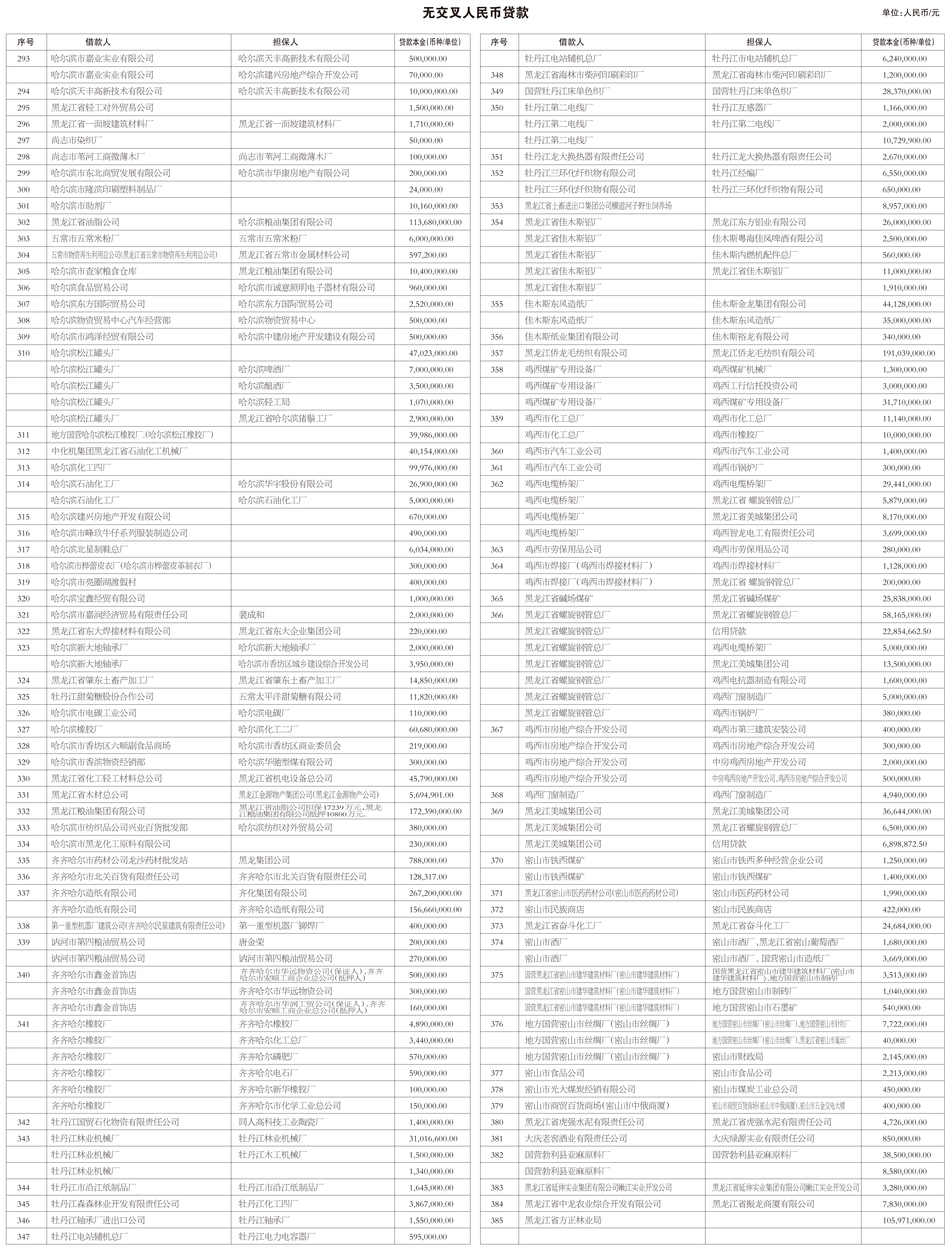 注:本公告清单仅列示截至2005年4月30日的本金余额,借款人和担保人及担保人的承继人应予偿还的利息余额按借款合同、担保合同及中国人民银行的有关规定计算(单位:人民币/元、外币/美元)。