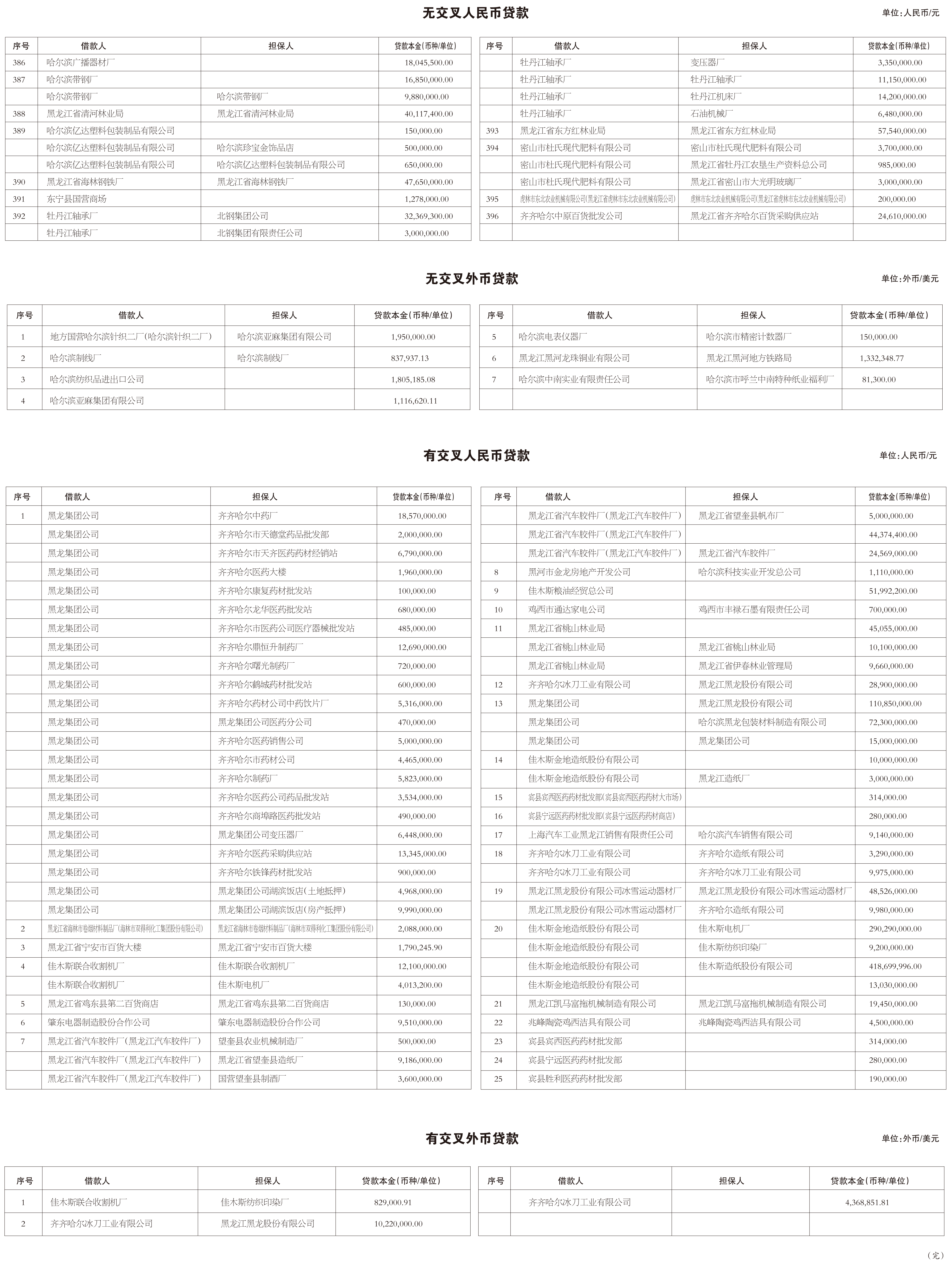 根据原中国银监会《中国银监会关于中国长城资产管理公司改制设立中国长城资产管理股份有限公司有关事项的批复》(银监复【2016】394号)文件精神, 经哈尔滨市南岗区市场监督管理局核准,中国长城资产管理公司哈尔滨办事处变更为“中国长城资产管理股份有限公司黑龙江省分公司”。现根据国家的有关法律和国务院、财政部、人民银行、最高人民法院的有关规定,中国长城资产管理股份有限公司黑龙江省分公司依法向下列债务人、担保人及债务人、担保人的承继人就下述全部债权及至债权被全部清偿完毕之日止所发生的利息主张权利。现以公告方式通知下列债务人、担保人及债务人、担保人的承继人在本公告发布后立即向中国长城资产管理股份有限公司黑龙江省分公司清偿债务,履行相应的义务。若债务人、担保人因各种原因发生更名、改制、歇业、吊销营业执照或者丧失民事主体资格等情形,请相关承债主体、清算主体代为履行义务或者承担清偿责任。