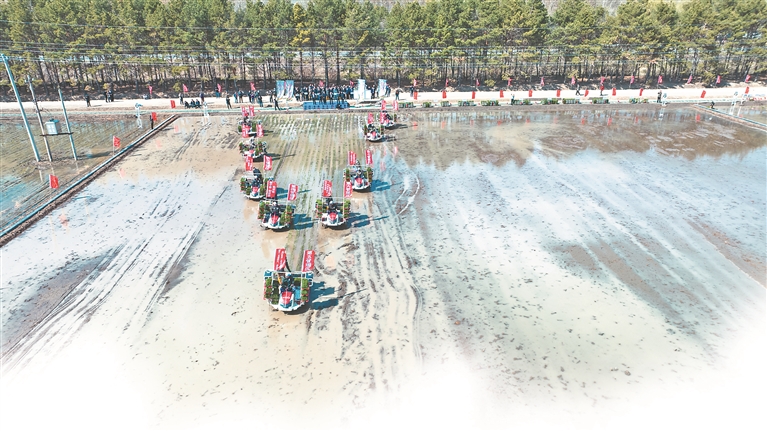初夏的北大荒,广袤稻田如镜面般波光粼粼,插秧机的轰鸣声与田间地头的欢声笑语交织成一幅现代农业的春耕画卷。作为我国重要商品粮基地,北大荒集团建三江分公司正以“科技+农艺”双轮驱动,全面推进千万亩稻田插秧工作。数据显示,5月11日,日推进插秧面积91万亩,预计5月25日前全面完成插秧任务,为全年粮食丰收奠定坚实基础。