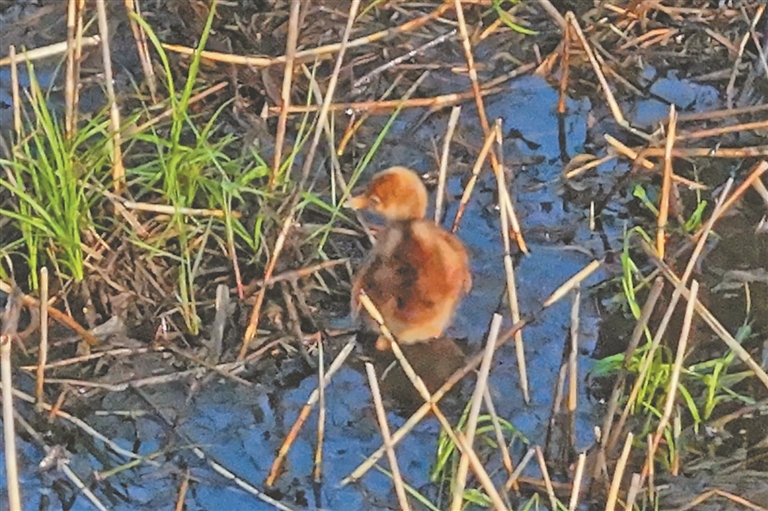野生丹顶鹤宝宝出生。郝玉瑞摄
