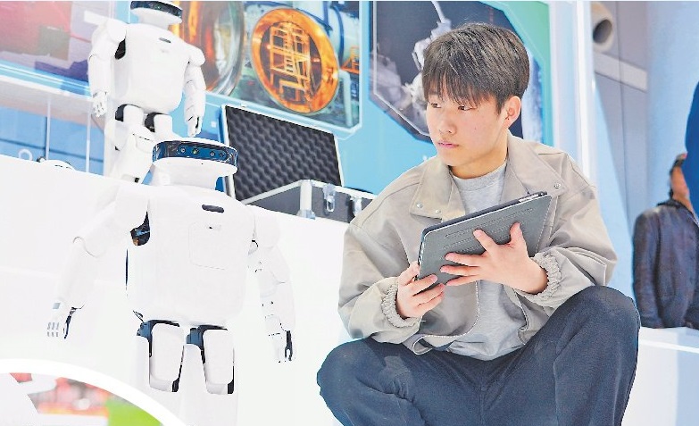 双足机器人的展示区域同样热闹非凡。哈尔滨工业大学的科研人员说:“这款双足机器人具备高度灵活的运动能力,通过先进的算法和传感器,能够在复杂环境中稳定行走,执行各种任务。未来,它有望在救援、服务等多个领域发挥重要作用。”