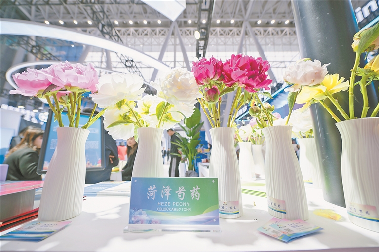 图③:菏泽芍药亮相山东展区。本报记者 张春雷摄