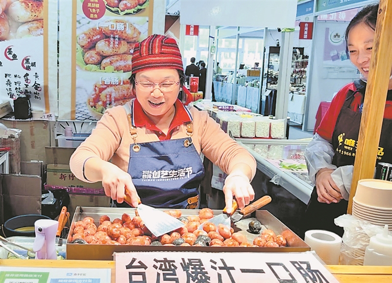 “我们带来的即食米糕采用台湾传统工艺,希望通过龙江粮仓的优质原料实现产销对接。”台湾参展商一边展示产品,一边告诉记者自己的期待。“走过路过不要错过,好吃的爆汁一口肠。”走进台湾的食品展区,大家不禁被这声吆喝声吸引。小烤肠翻滚,咬下去一口爆汁,肉质紧实,带着特殊的台湾风味。“我们的一口肠纯猪肉,不加一滴淀粉,用台湾工艺制作。这也是我们第一次将这个台湾小吃带到哈尔滨,希望让黑龙江的消费者体验到最好的品质。目前我们的餐车都有成熟的加盟体系,希望能借助哈洽会承接更多本地经销商。”参展商唐先生说。