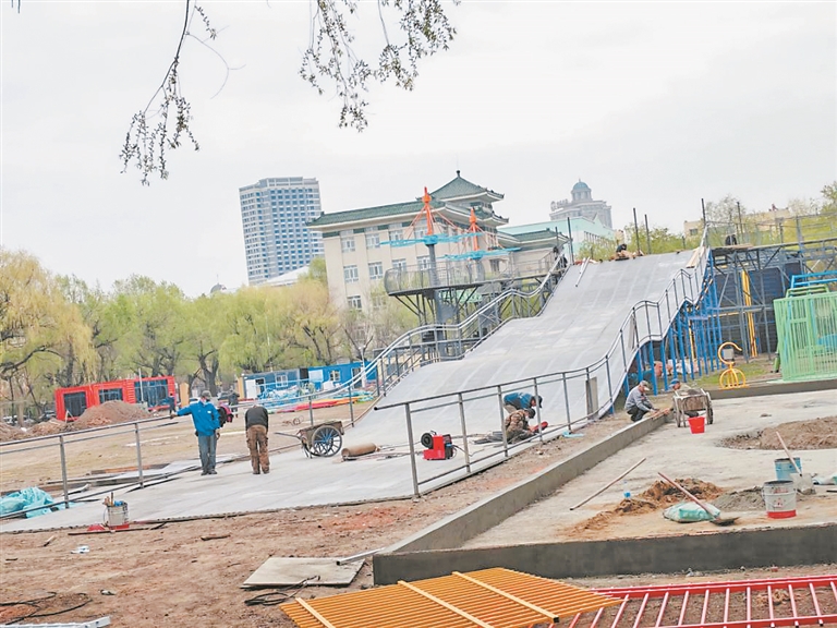 在项目建设现场记者看到,20余名工人正在紧锣密鼓地进行各项施工。据施工现场的项目负责人介绍,该项目于今年3月中旬启动建设,建设内容包括改造体育场地面及景观,更新体育健身设施及建设综合活动区,增设儿童拓展乐园、特色美食街区,配套夜间亮化设施、休息区、公共洗手间等公共服务设施,打造集社区活动空间、儿童娱乐场所、特色美食及商品市集、网红打卡区、休闲活动区、体育健身休闲区等功能分区于一体的综合型城市体育公园,改善亚麻体育场整体面貌及周边环境。截至目前,该项目已经完成75%的相关工程,下一步将建设火山攀岩等项目。
