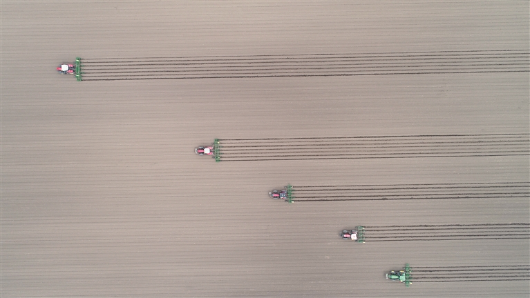 “前杆尺、中间杆尺、后杆尺分别精准控制入土深度为15厘米、25厘米、30厘米,这种分层递进作业方式,不仅打通了土壤板结层,还显著提升了土壤温度与蓄水保墒能力,为农作物生长创造良好条件。”第五管理区技术员宣宇对三杆尺的作业原理进行详细介绍。