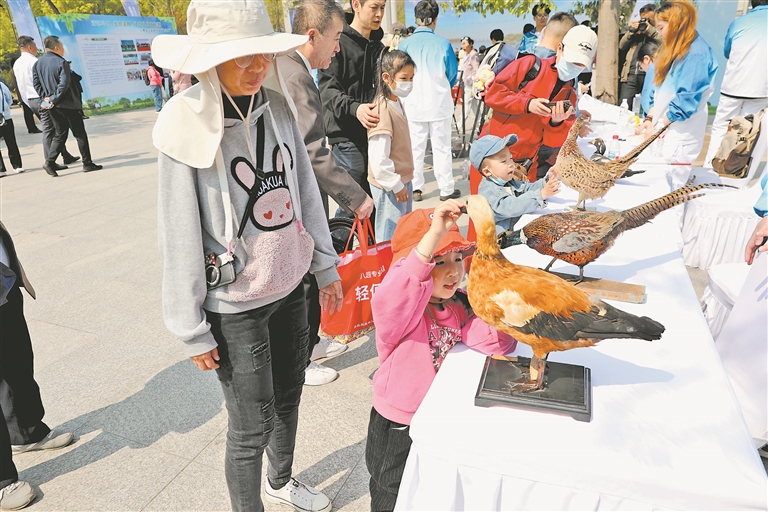 活动现场,野生动物保护志愿者和高校大学生代表分别发起爱鸟护鸟倡议和宣言,播放了鸟类保护宣传片,通过优秀巡护员的经验分享,以及各类标本展示、宣传展板等方式向公众宣传保护鸟类的知识和相关法律法规。