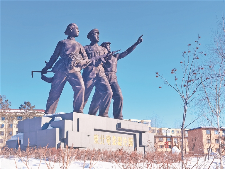 鹤岗市兴山区电影主题广场上的雕塑作品。 本报记者 吴树江摄