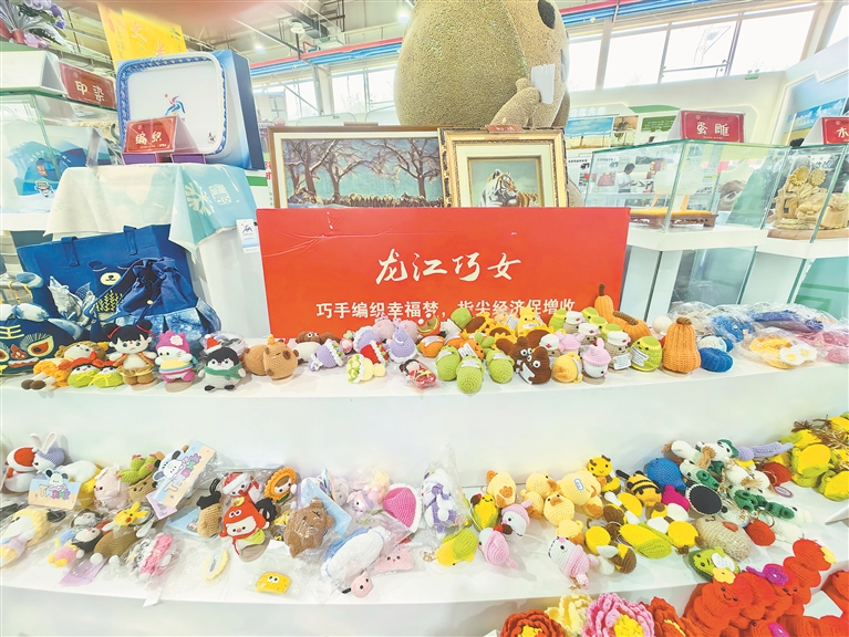 “黑土优品”暖胃更暖心。在“黑土优品”展馆的“巾帼优品”展区,部分货品在美食的包围中显得有些“格格不入”:手工编织的发卡、挂饰、玩具、包袋等产品,全都出自双鸭山市手工编织制作协会的编织女工之手。