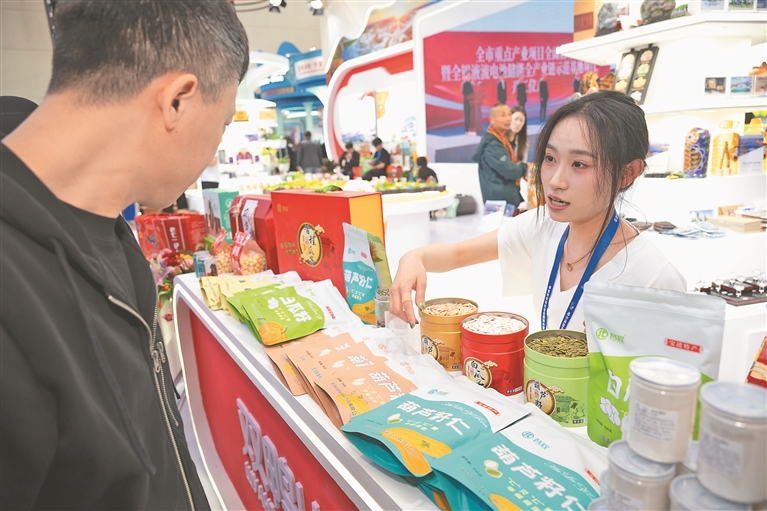图②:工作人员介绍宝清瓜子。