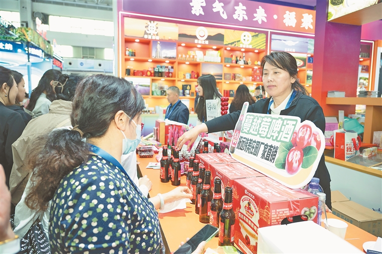 佳木斯展区同样热闹非凡,抚远蔓越莓和蔓越莓啤酒异常火爆。桦南县的紫苏鸡蛋与蒲公英茶、同江的鲟鳇鱼、富锦的狮头鹅……消费者一边试吃,一边忙着下单,尽情享受这场美食盛宴。