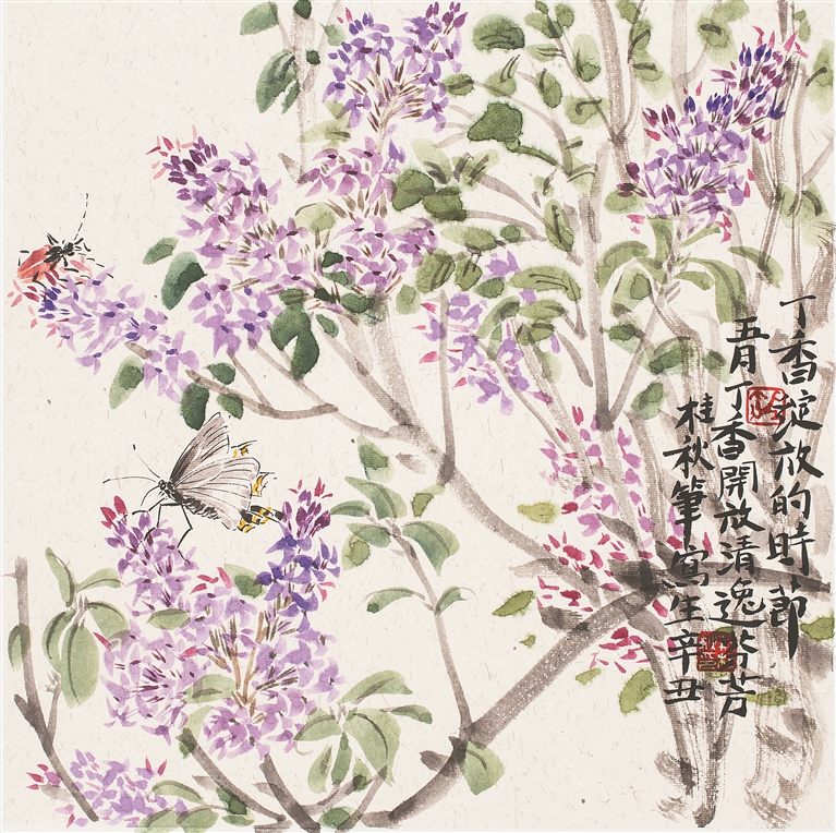 《丁香绽放的时节》 中国画 荆桂秋