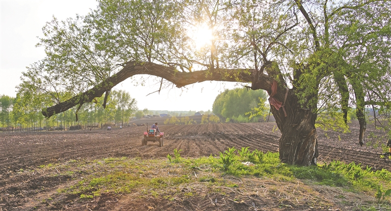 初夏时节,绥化市北林区的乡间弥漫着蓬勃生机,春种热潮在田野间涌动。在兴福镇六合村,村民邢立柱熟练地驾驶着拖拉机,牵引着播种机在广袤肥沃的黑土地上来回穿梭。