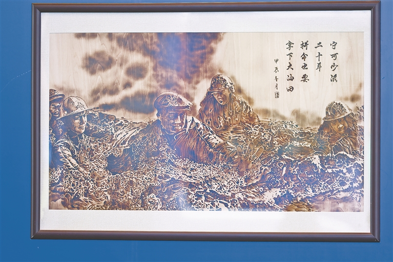 以烙铁为笔,以高温为墨,以木板为纸,在第二十一届中国(深圳)国际文化产业博览交易会黑龙江展馆展出的多幅大庆烙画,以古朴典雅、清晰秀丽的艺术特点,吸引了众多参观者驻足欣赏。据介绍,烙画又称烫画、火笔画,是利用高温的烙铁,在木板上进行艺术创作而成。本次展出的多幅大庆烙画都是以大庆精神(铁人精神)为题材而创作的。