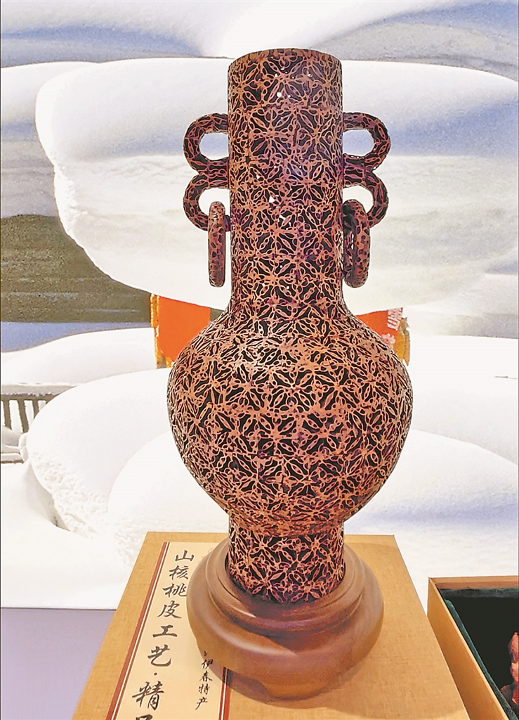 本报26日讯(记者李淅)26日,第二十一届中国(深圳)国际文化产业博览交易会“中国工艺美术文化创意大赛”成绩揭晓,来自黑龙江展团伊春市王美江团队创作的山核桃工艺花瓶《千秋和平》荣获金奖。