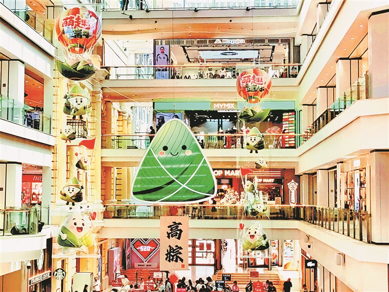 为迎接端午节的到来,各商场在引进充足货源的同时,也都装饰一新,节日气氛浓厚。