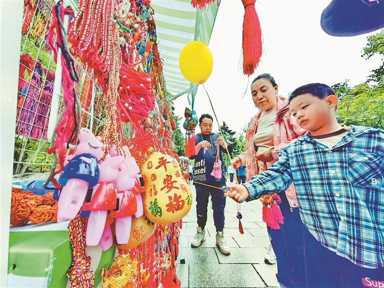 太阳岛风景区内游客沉浸式购物。本报记者 苏强摄