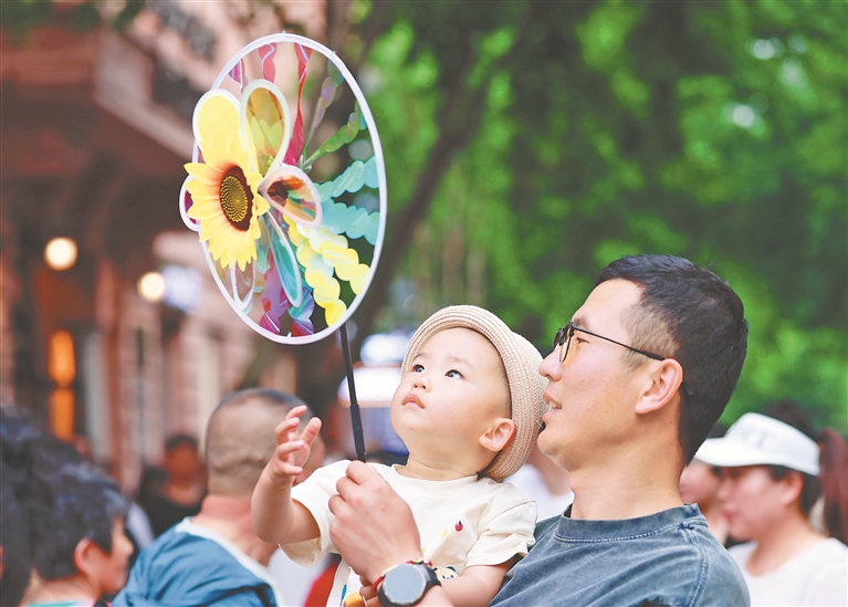 5月30日晚,端午前夜,市民、游客从四面八方汇聚到哈尔滨市中央大街,奔向松花江畔踏青、游玩。