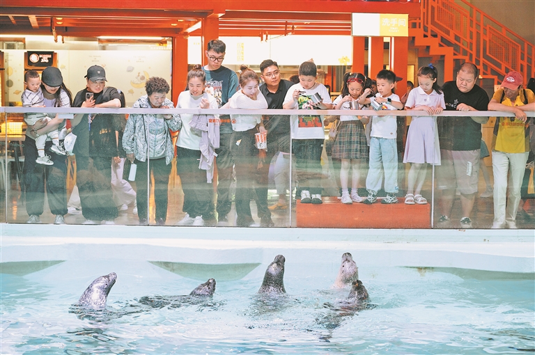 端午假期,哈尔滨极地馆成为亲子家庭的热门目的地,处处洋溢着孩子们的欢声笑语。配合节日氛围,馆内还增设儿童节冰川情景剧特别演出,让小朋友们在清凉的海洋世界里,既收获了知识与快乐,也度过了一个充满童趣的端午假期。本报记者 张春雷摄
