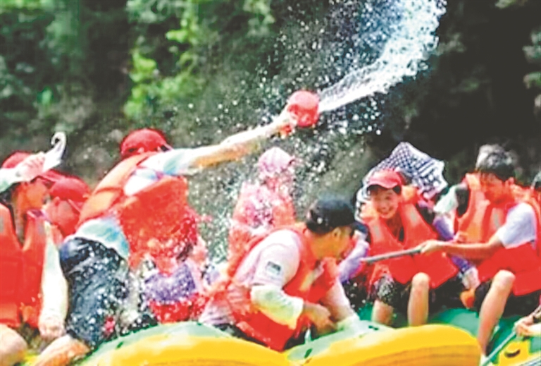 经过几个小时的漂流,皮筏即将来到终点。上岸前,漂流的人们免不了发生最后一场混战,大家都不觉得累,还要泼水宣泄激情。