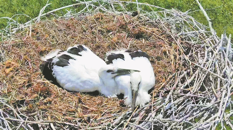 监测过程中,工作人员还发现了东方白鹳的许多有趣习性:东方白鹳有利用旧巢的习惯,会对旧巢进行修缮加固后继续使用;产蛋数量通常在3-5枚,孵化期约30-31天,也有32-33天出壳的;雏鸟孵化后,亲鸟会轮流觅食喂养……这些发现为深入研究东方白鹳生态习性和生物学特性提供了珍贵的一手资料,也为科学制定保护措施筑牢数据根基。