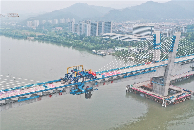 6月4日拍摄的由中铁二十四局承建的金建高铁新安江特大桥(无人机照片)。当日,位于浙江省建德市境内的新建金华至建德高速铁路新安江特大桥成功合龙,标志着金建高铁建设取得关键性进展,为全线通车奠定了基础。金建高铁正线全长约65公里,南起浙江金华市,北至建德市。线路北接杭黄高铁建德站,南接沪昆高铁金华站,是国家快速铁路网中“黄山至金华”铁路通道的重要组成部分。