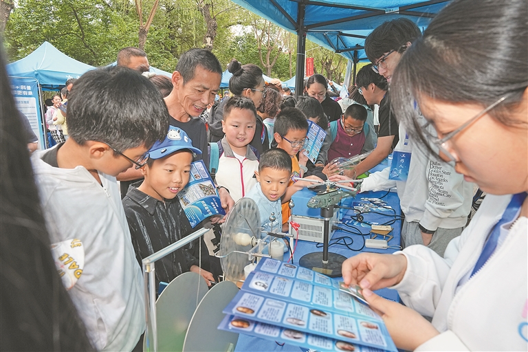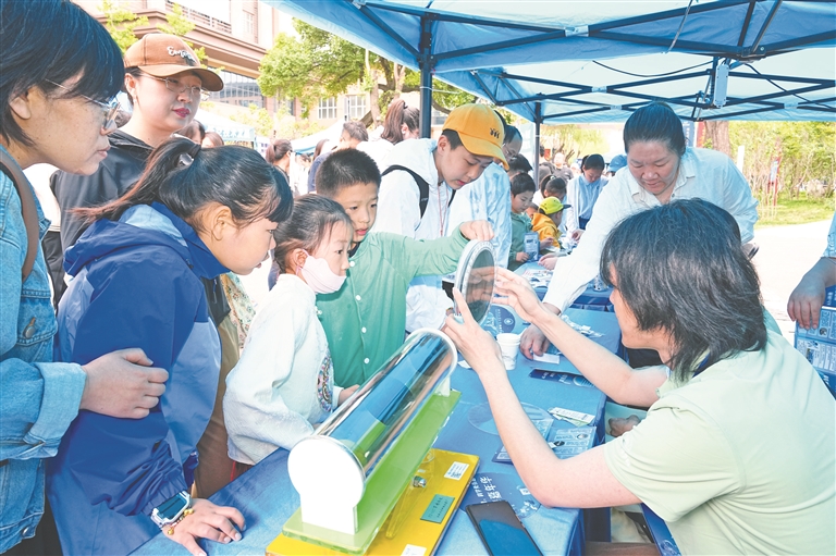 “哈工大的哥哥姐姐带我们体验科学实验,太有意思了!”“我也希望来这里学科学”……百余个趣味科普游戏为在场的小朋友们带来了一场有趣有料的节日盛宴,吸引孩子们纷纷体验。