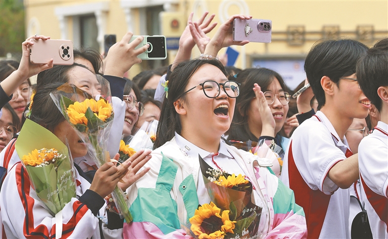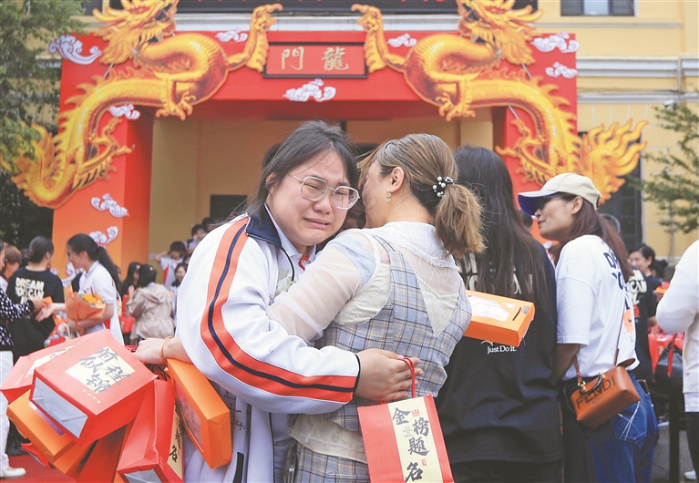 出了教室,孩子们与师长一一击掌、拥抱,男生们豪情满志,和同学挥手作别;女生则情不自禁,泪湿衣袖……