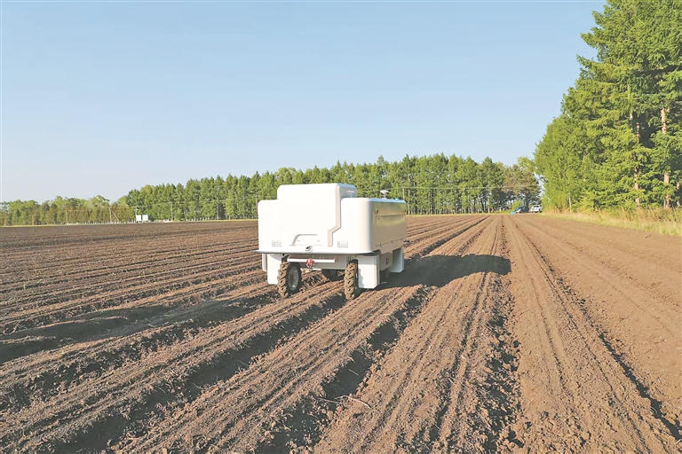 智能激光除草机器人在田间稳定行驶。侯越摄