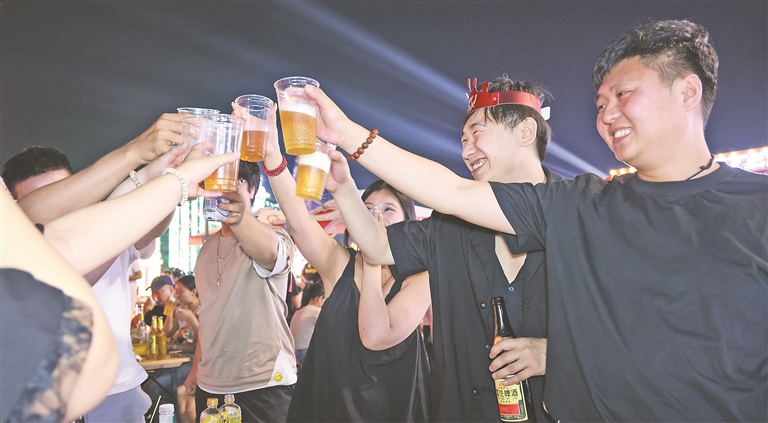 盛夏时节,绿荫下、街道边,木制的啤酒屋、夜市大排档,太阳岛上、松花江畔,到处都能看到人们喝啤酒的身姿,一杯杯酒花翻滚的啤酒,培育了哈尔滨人豪爽、大气、赤诚、炽热的性格;“啤酒+艺术”“啤酒+音乐”“啤酒+体育”“啤酒+文化”等各具特色的跨界组合,也彰显了哈尔滨开放、豪爽、包容的城市品格。