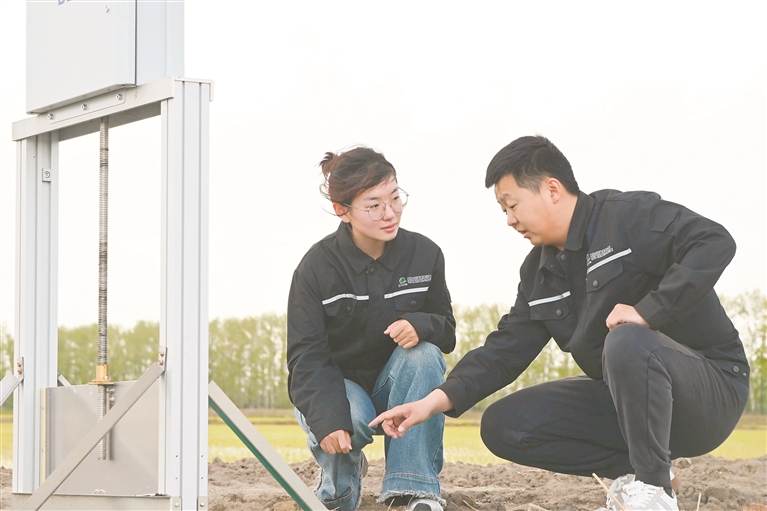 技术人员韩爽这些年见证了太多农业设备设施的引入、试验与推广,心中早已沉淀了大量对现代农业的体会,他向崔晓盈介绍:“眼睛能看到的只是一部分,现在我们农业环节正逐步数字化,通过‘智慧’数控化设备设施替代传统人工介入,正是我们探索未来农业发展的一个路径。”说着,他打开手机终端,小小的一块屏幕上,集成了关于这块农田的水位信息、作物生长、土壤肥力等10余项参数,简单动动手指,各个格田的农渠与闸门就可远程微调控制。