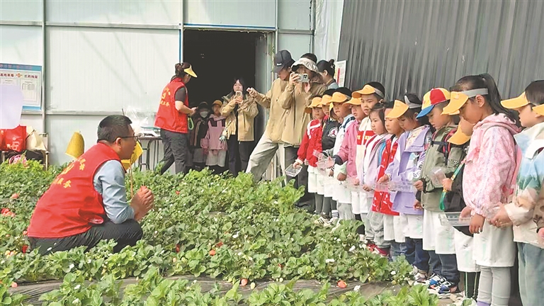 在闫家岗农场采摘草莓。魏岚摄