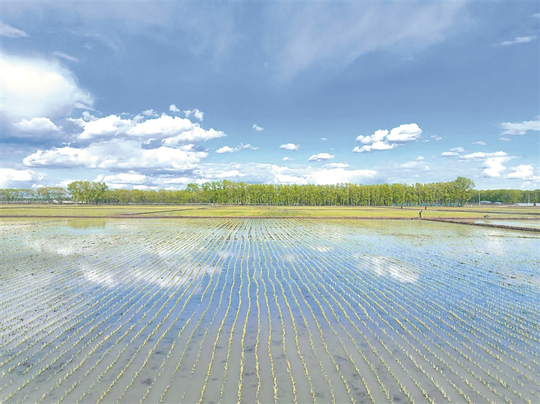 6月,在广袤的三江平原腹地,一望无际的水田犹如“天空之镜”,嫩绿的稻苗在夏风中轻轻摇曳……