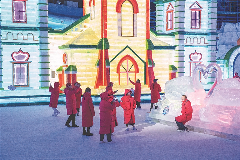 南方游客打卡梦幻冰雪馆。图片由哈尔滨冰雪大世界提供