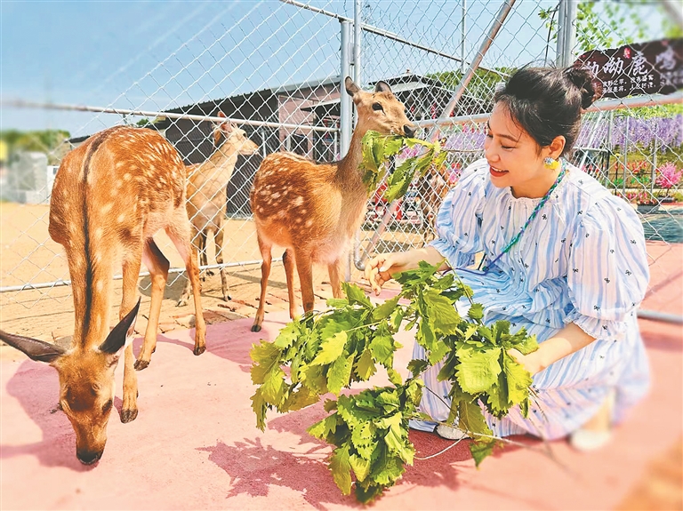 不远处的鹿园里,亲手投喂小鹿,听取“呦呦鹿鸣”;在百鸟园里和可爱的萌宠互动;四时春生态农场里,市民采摘着大樱桃;露营地里飘来一阵阵烧烤的香味;泡泡舞会里,孩子们笑着、闹着……几年来,阳明区临江村发生了翻天覆地的变化,“没想到,我们也吃上了旅游饭!”一位村民说,他守着村口开了一家超市,生意红红火火。