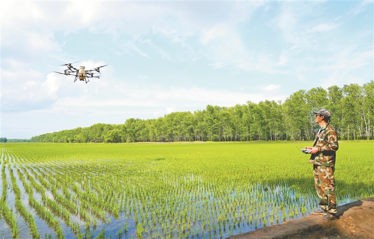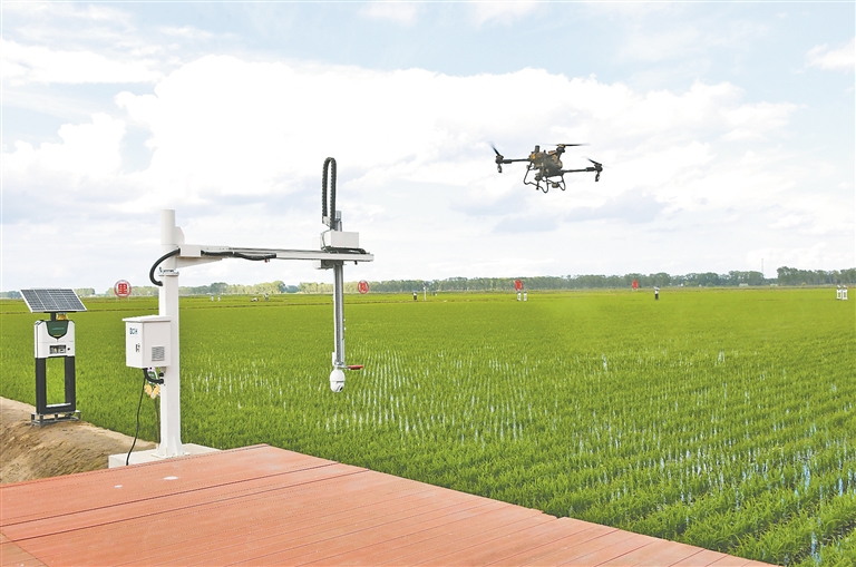 走进北大荒集团普阳农场,只见稻田里“四情”监测、智能灌溉、物理诱虫、无人机植保等一系列智慧元素在夏管作业中大显身手。