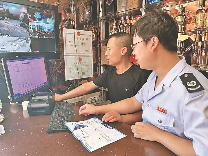 泰来县税务局工作人员上门为个体工商户办理业务。