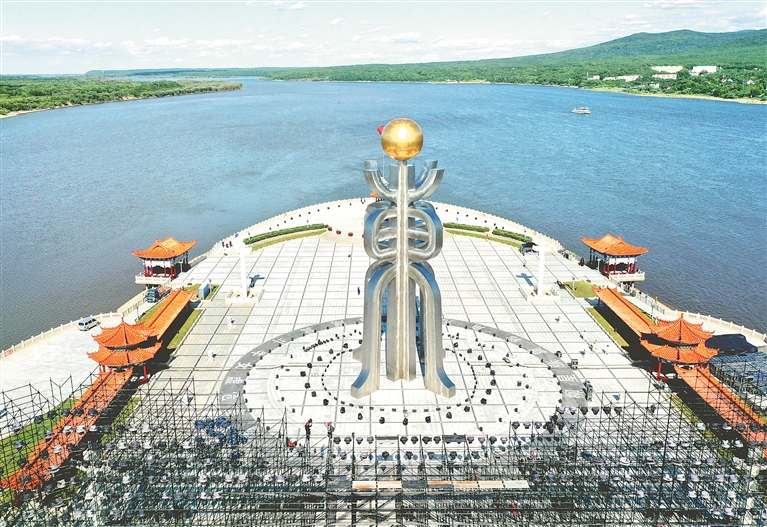 近日,抚远市东极广场上,第七届黑龙江省旅游产业发展大会特色文化旅游推介会舞台搭建工作已近尾声。