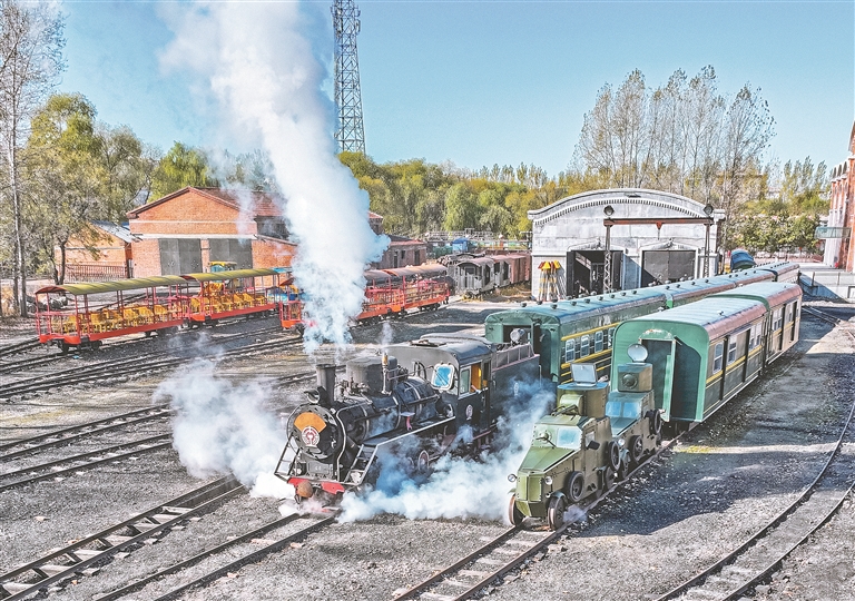 “呜——”一声悠长的汽笛划破林间寂静,绿色的蒸汽小火车喷吐着白色烟柱,缓缓驶离被誉为“时光倒流车站”的桦东站。车厢内,游客们倚窗眺望,13.14公里长的森铁线路在绿意葱茏中延伸,将人们带回半个多世纪前的林区岁月。这座依托珍贵工业遗产打造的“桦南百年蒸汽火车旅游区”,已成为龙江森工转型发展的亮眼名片。