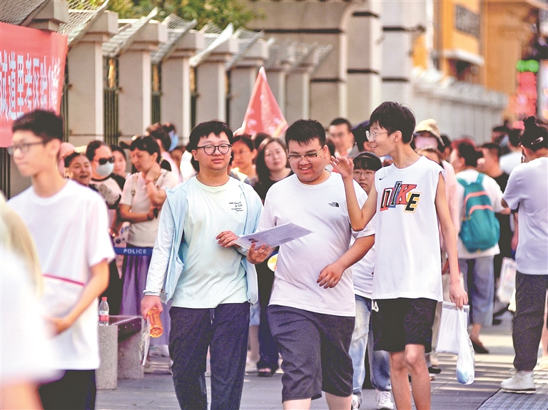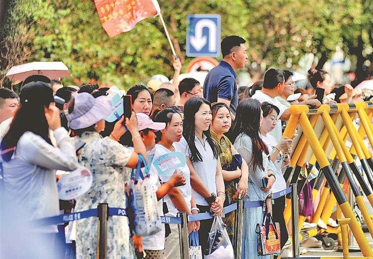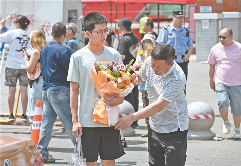 当日7时30分,在家长和老师的关注下,考生们陆陆续续地通过安检走进考点。