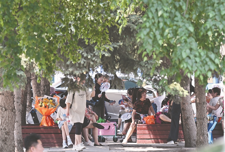 中午11时,随着铃声的响起,2025年中考第一科语文科目考试结束。室外的温度已经超过32摄氏度,家长们在炎炎烈日下等待孩子走出考场。