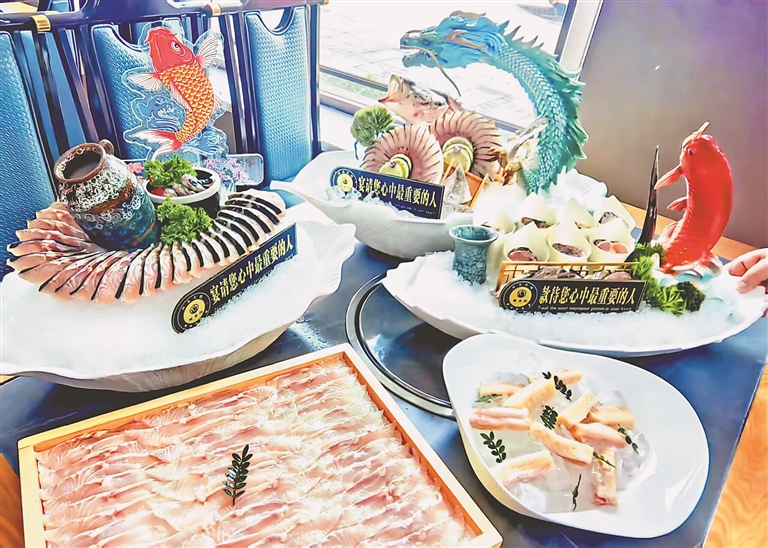 “福鑫鱼馆民间菜”的鳇鱼火锅堪称一绝。精致的鳇鱼片被匠心独运地设计成各种花朵形状,每一片晶亮的鱼肉都透着新鲜的光泽。鸳鸯锅中的汤底“咕嘟咕嘟”翻滚着,散发出诱人的香气,那是用鳇鱼骨精心熬制的精华,每一口都是极致的诱惑。随着火温升高,鱼肉在锅中由透明转为乳白,再染上一抹淡淡的粉红,仿佛在进行一场华丽的蜕变。实在不忍触碰这份极致,小心地捞出一片,蘸上特制的酱料汁,顷刻间鲜美的滋味舌尖流转,忍不住闭上眼睛,尽享这人间至味清欢。