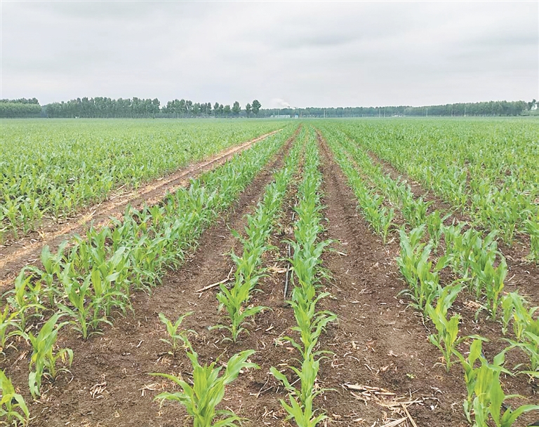 近日,走进安达市升平镇水肥一体化、米豆间作示范园区的广袤农田,目光所及,玉米、大豆等作物长势喜人。该镇种粮大户刘海国的玉米地里,安装了一套智能水肥一体化精准滴灌设备。一排排滴灌管线均匀铺设在田间,在“润物细无声”中给玉米苗送来源源不断的“养分”。和传统大水漫灌相比,这套设备综合利用滴灌、自动控制、水肥一体化等先进技术手段,因地制宜制定灌溉方式和施肥策略,水肥同步、精准灌溉。