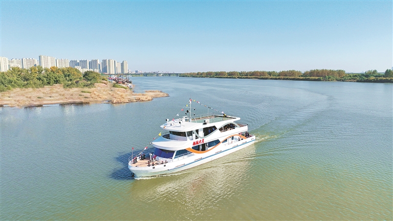 中国首艘寒地纯电池推进绿色智能内河船“领航之星”号。