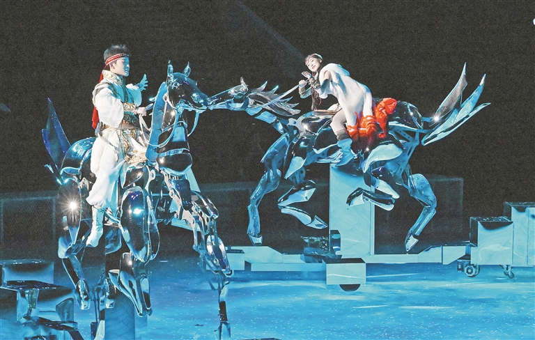 “演出采用契合年轻群体喜好的呈现形式,以充满趣味与挑战的游戏闯关环节精彩开篇,瞬间抓住观众的注意力。在演出进程中,巧妙穿插刚劲有力的武术表演、惊险刺激的杂技以及科技感十足的无人机表演等丰富内容,极大地增强了演出的观赏性与吸引力。”哈尔滨冰雪大世界演艺有限责任公司总经理曹向东希望借助这样精彩纷呈的形式,让大家了解,在当时的历史背景下,哈尔滨人民所展现出的伟大民族精神。