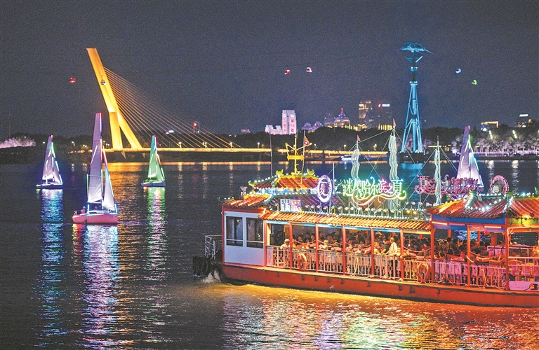 松花江上的夜游观光船。