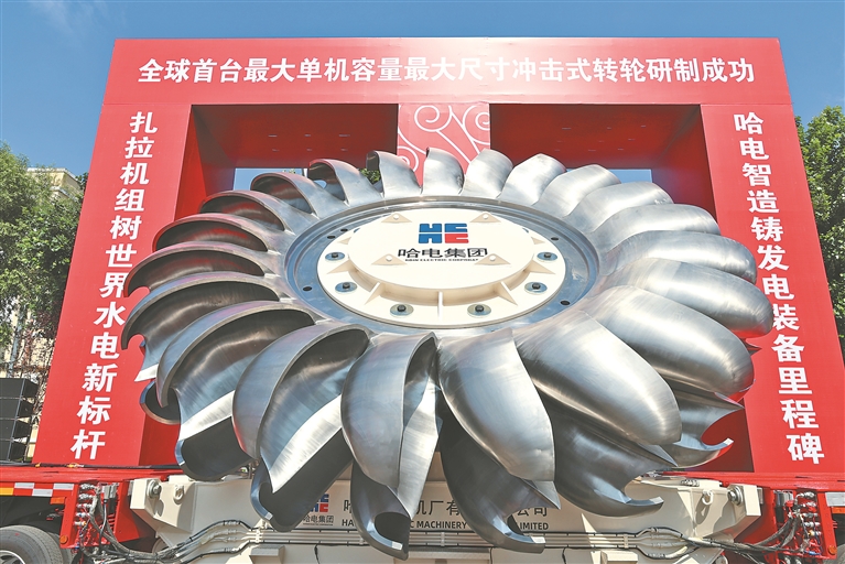 7月2日,凝聚中国水电装备顶尖智慧的全球首台单机容量最大500兆瓦、转轮尺寸最大6.23米的冲击式水轮机核心部件——转轮,由哈电集团哈尔滨电机厂有限责任公司(简称哈电电机)自主研制成功并发运,标志着我国在高水头、大容量冲击式水轮机组核心装备领域实现历史性突破。