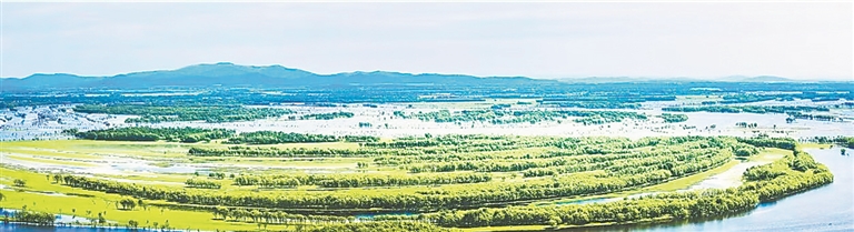 夏季的湿地正上演最磅礴的生命狂欢,生命在此刻展现出最恣意的模样。夏日催动潺潺涌动的流水,画笔般反反复复涂抹,将绿的笔触延伸至天际。新生的草芽不断顶破湿润的泥土,尖尖着嘴儿,向上伸展着无限的生机。一湾一湾的新绿就在清澈的碧水中摇曳,日渐浩荡起来。树们争先恐后地把新鲜细嫩的叶子在枝头骄傲地展开、再展开,直到浓荫绣满极目远眺的眼底。