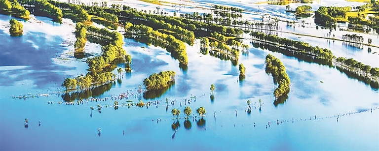 水流环环绕绕地漫淌着,承载着生命的自由与繁盛,涌动起湿地跌宕的脉动,聚积着无数蓬勃滋长的生灵,向人们展示着湿地夏天独有的魅力。