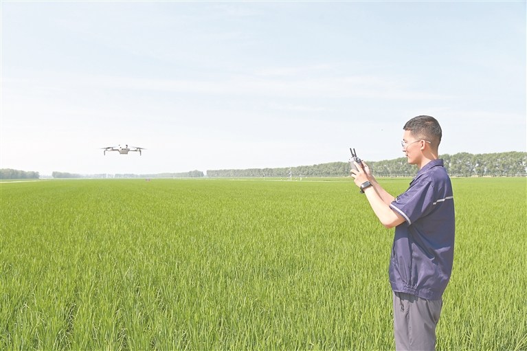 “我现在使用无人机一天能巡2000多亩秧田,算下来这是我早几年靠脚踏查效率的十几倍。”技术人员王力权摆弄着手柄,一张张大田深处的农情图片被同步传输到他的手机上,而巡查路线也被准确标注在操作终端上。说话间,一台新型的植保无人机从林荫间飞出,转眼到达既定地块,迅速开展喷药作业。